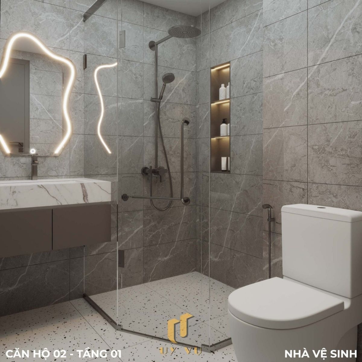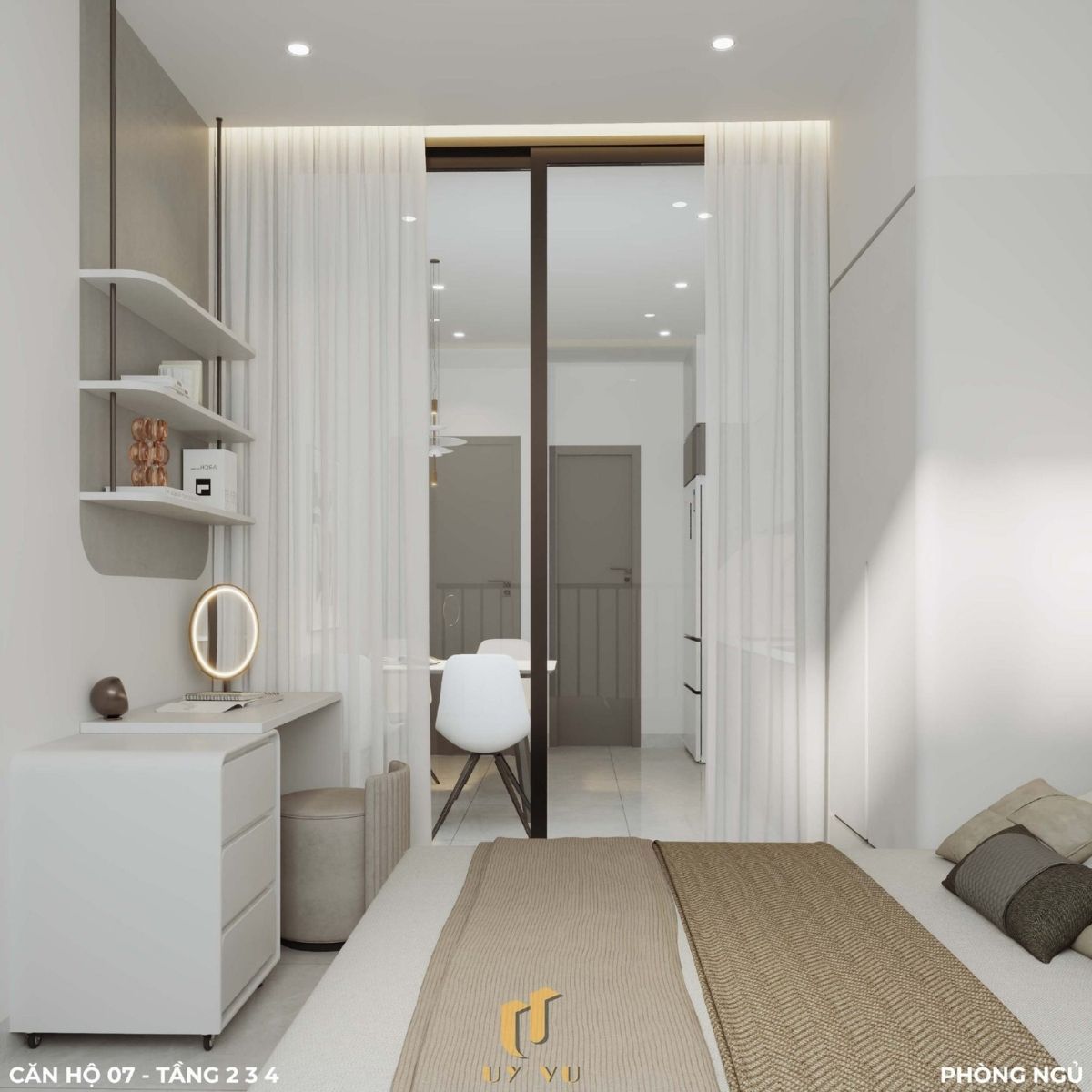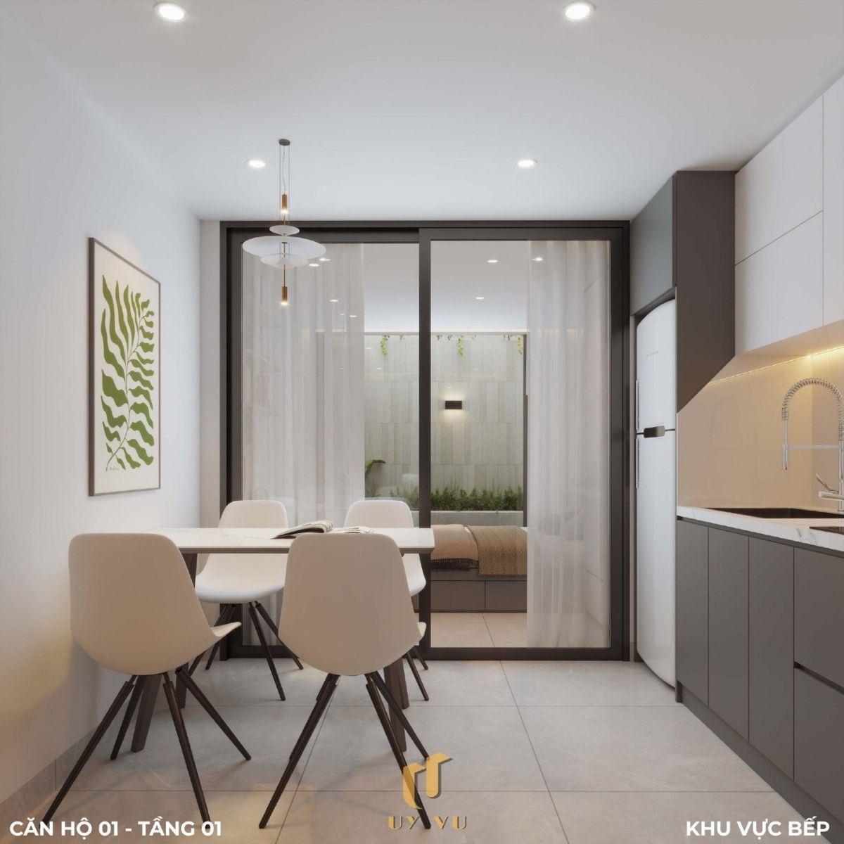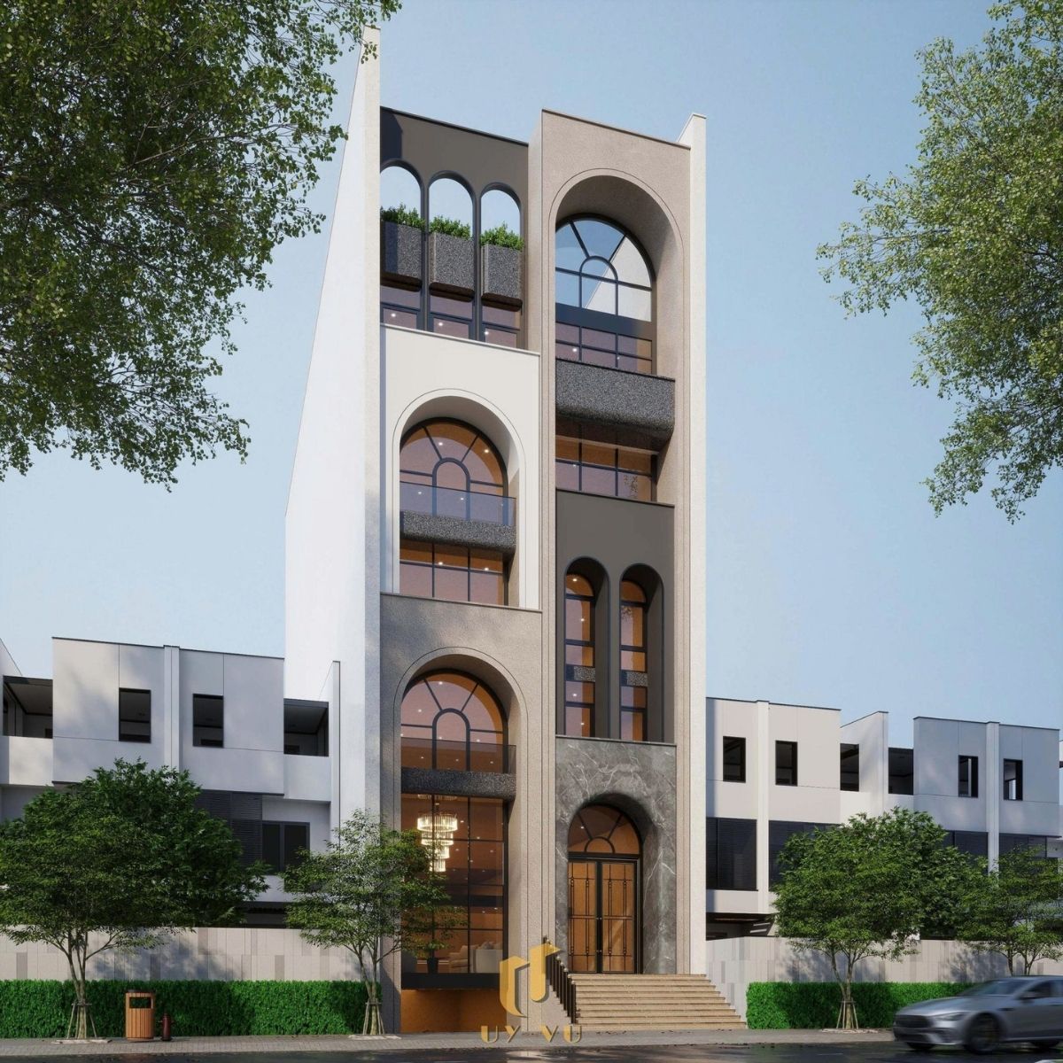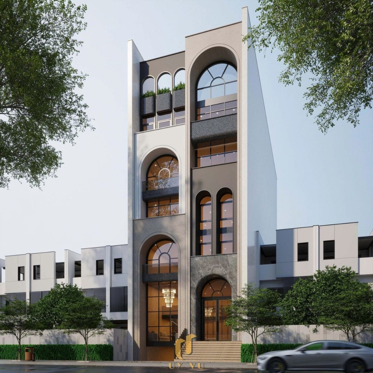 Căn hộ Chị Nga là một tác phẩm kiến trúc nổi bật với thiết kế vòm sang trọng, mang đậm dấu ấn thẩm mỹ tinh tế ngay giữa trung tâm Đà Nẵng. Mặt tiền được phối hợp hài hòa giữa các khối hình học hiện đại và đường cong mềm mại của hệ cửa vòm để tạo nên vẻ đẹp vừa uyển chuyển vừa vững chãi. Đây không chỉ là nơi ở mà còn là biểu tượng của phong cách sống đẳng cấp và gu thẩm mỹ tinh tế.