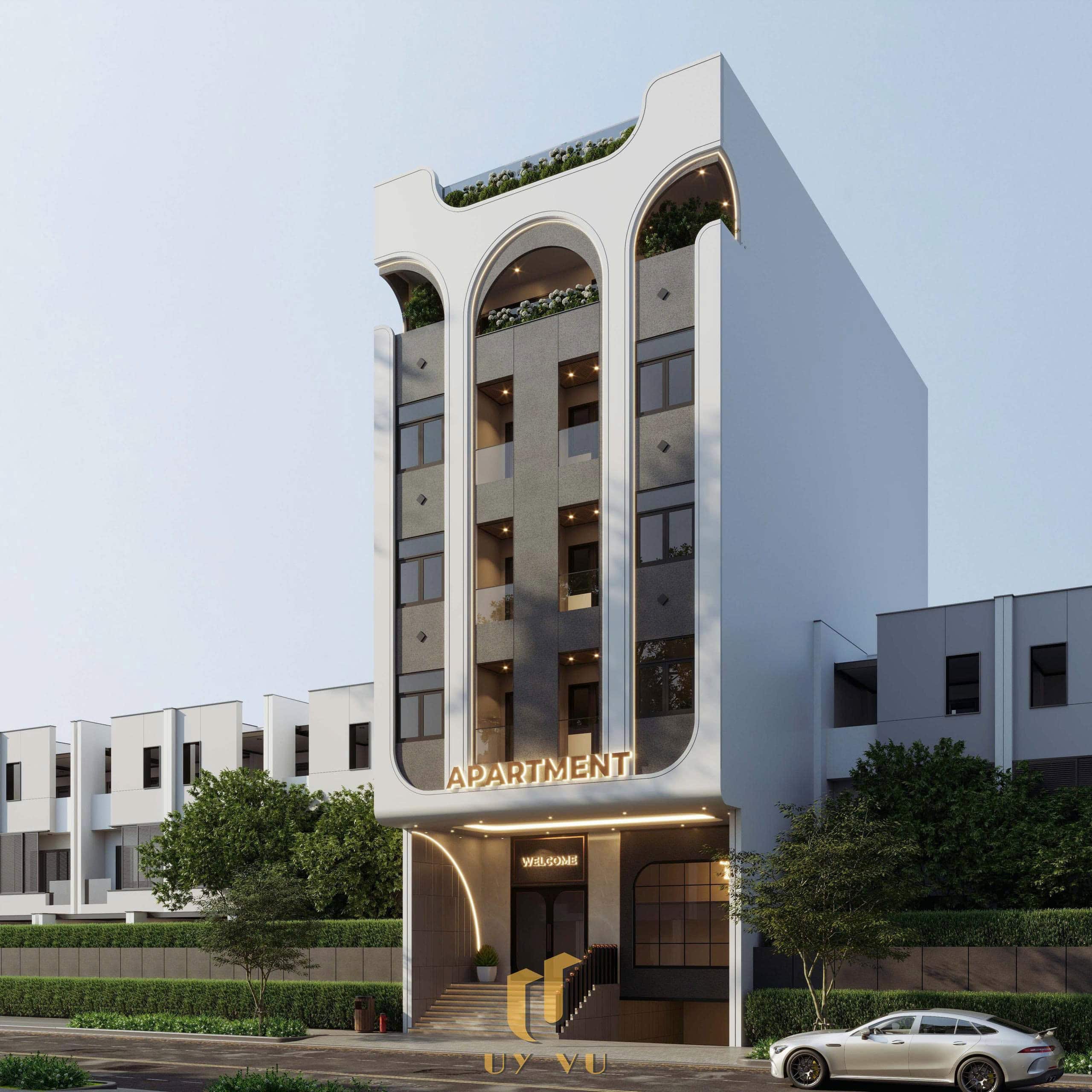 H’s Apartment gây ấn tượng ngay từ ngoại thất với mặt tiền vòm cong mềm mại, đường nét tinh giản và bảng màu trung tính hiện đại, tạo cảm giác sang trọng nhưng gần gũi. Ban công và logia được bố trí hợp lý, kết hợp mảng xanh xuyên suốt từ tầng trệt đến tầng trên, giúp công trình luôn thông thoáng và giàu sức sống. Hệ cửa kính lớn cùng giải pháp mở mặt đứng cho phép ánh sáng tự nhiên lan tỏa sâu vào không gian ở, đồng thời tăng hiệu quả thông gió chéo, mang lại cảm giác dễ chịu suốt cả ngày. Bên trong căn hộ, nội thất được tổ chức gọn gàng, ưu tiên công năng và sự tiện nghi, đáp ứng nhu cầu sinh hoạt linh hoạt của người thuê. Ánh sáng nhân tạo được xử lý ấm áp, kết hợp cùng ánh sáng tự nhiên và cây xanh tạo nên một không gian sống thư thái, thoải mái – nơi người thuê không chỉ “ở”, mà thực sự cảm nhận được sự cân bằng và an yên trong nhịp sống đô thị.