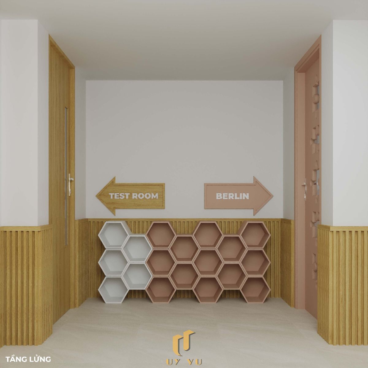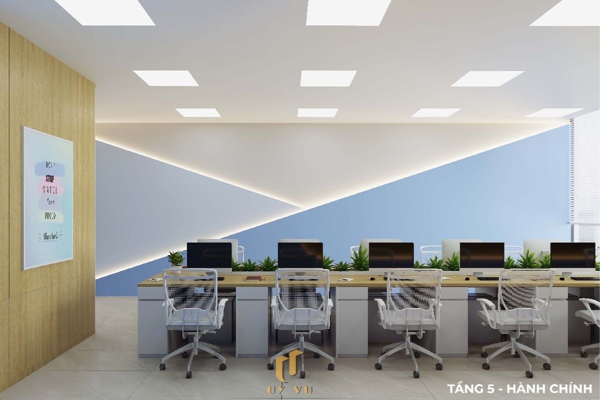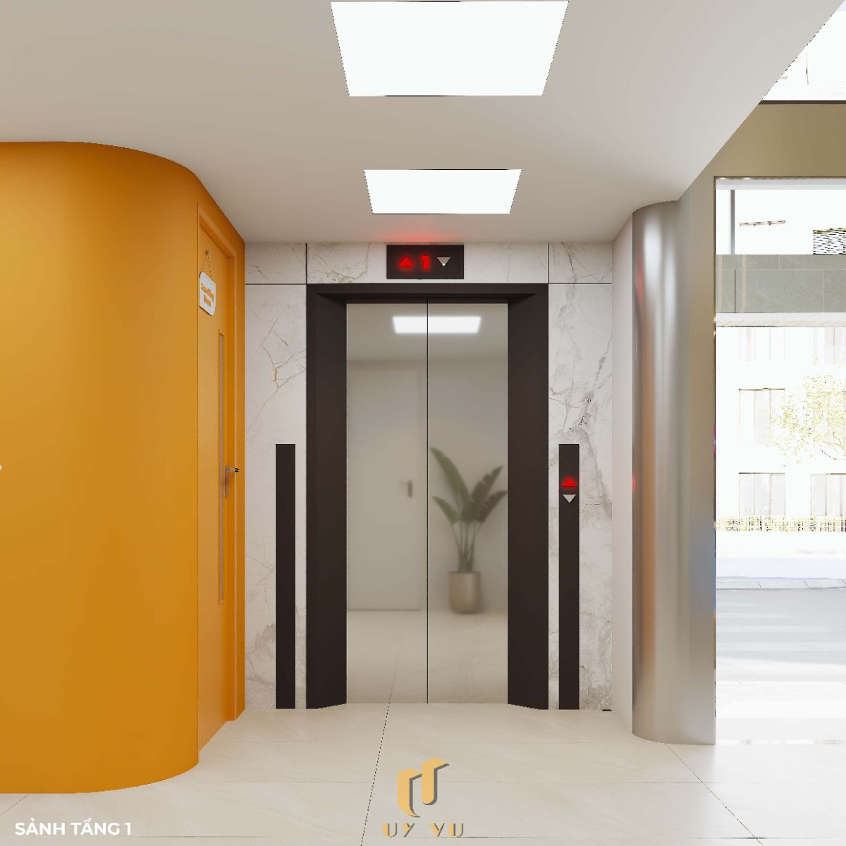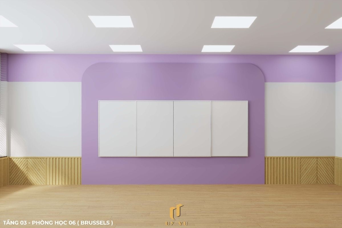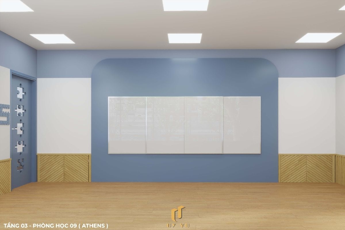 Trung tâm Anh ngữ nổi bật với thiết kế kiến trúc hiện đại, kết hợp hài hòa giữa những đường cong mềm mại và mảng màu sắc tươi sáng, tạo nên một không gian năng động và sáng tạo.